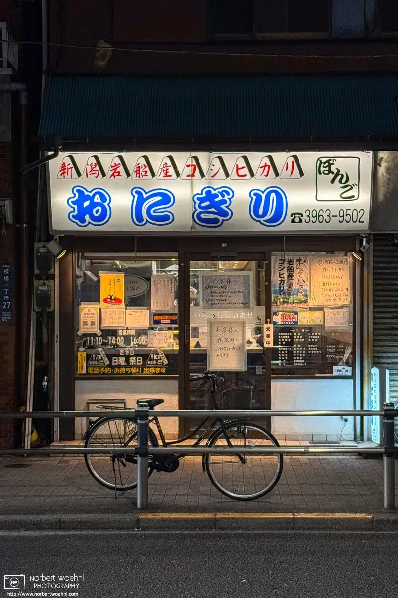 2026-01-30 Norbert Woehnl #photography #digital Photos Onigiri Shop, Itabashi, Tokyo, Japan 東京都・板橋区 On my way back from work, I took this photo of a shop selling Onigiri (rice balls) in the area around JR Itabashi Station in Tokyo, Japan. Shot with iPhone 15 Pro. Edited in Adobe Lightroom Classic. Onigiri Shop, Itabashi, Tokyo, Japan Share Share by Email Share by Email Share on BlueSky Share on BlueSky Share on Mastodon Share on Mastodon Share on Flipboard Share on Flipboard Copy Link Norbert Woehnl Norbert Woehnl is a Photographer in Tokyo, Japan, specializing in Travel, Location, Editorial and Street Photography. Subscribe to his free Everyday Journeys newsletter. Top of the page Office Window View, January 29, 2026 Sending comment... - コメントを送信中 Leave a Comment - コメントする E-mail - メールアドレス Name - お名前 Website - ウェブサイト By submitting your data, you agree that all entered data may be saved and displayed as a comment.