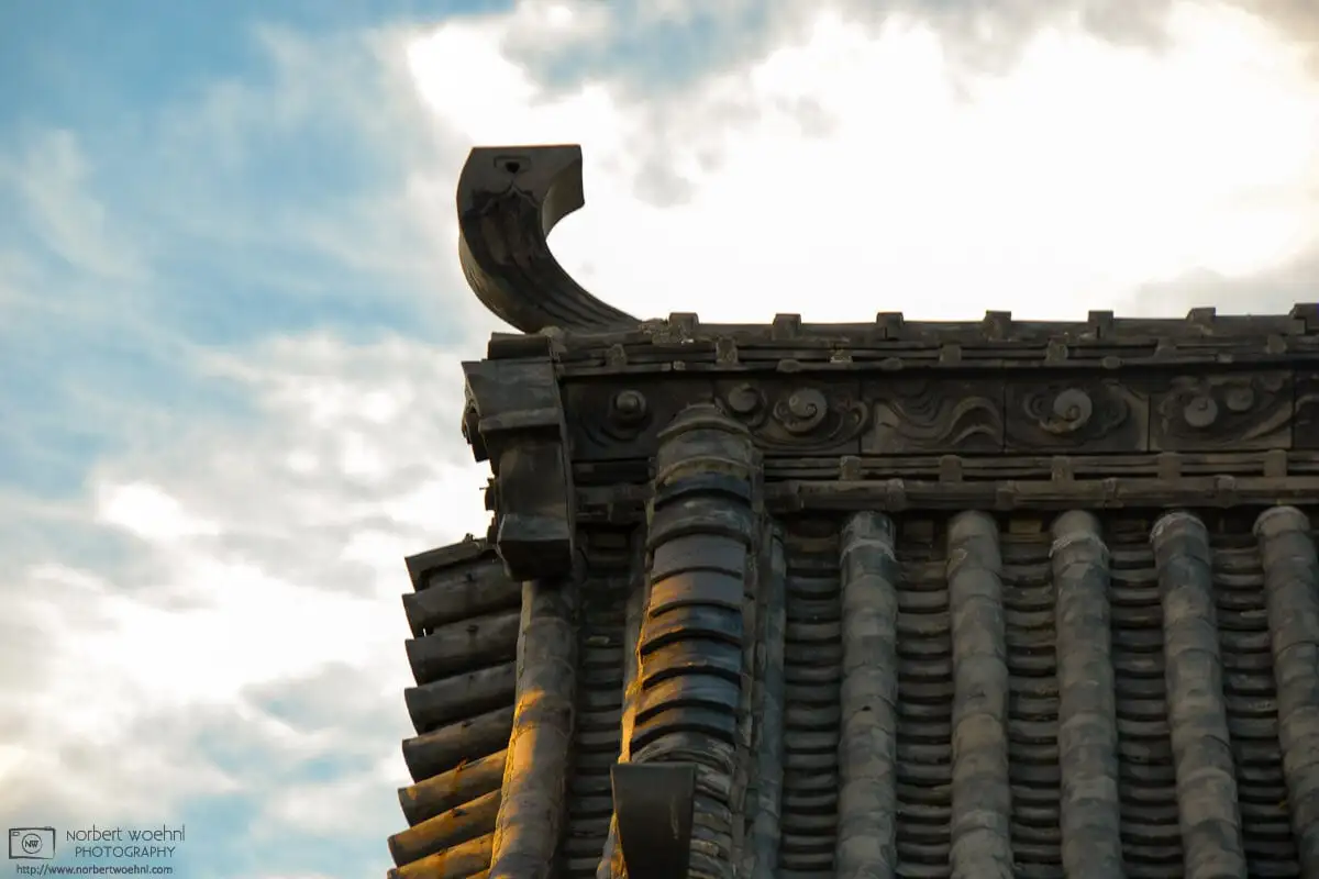 The late sunlight illuminated the roof of the hall ever so slightly.