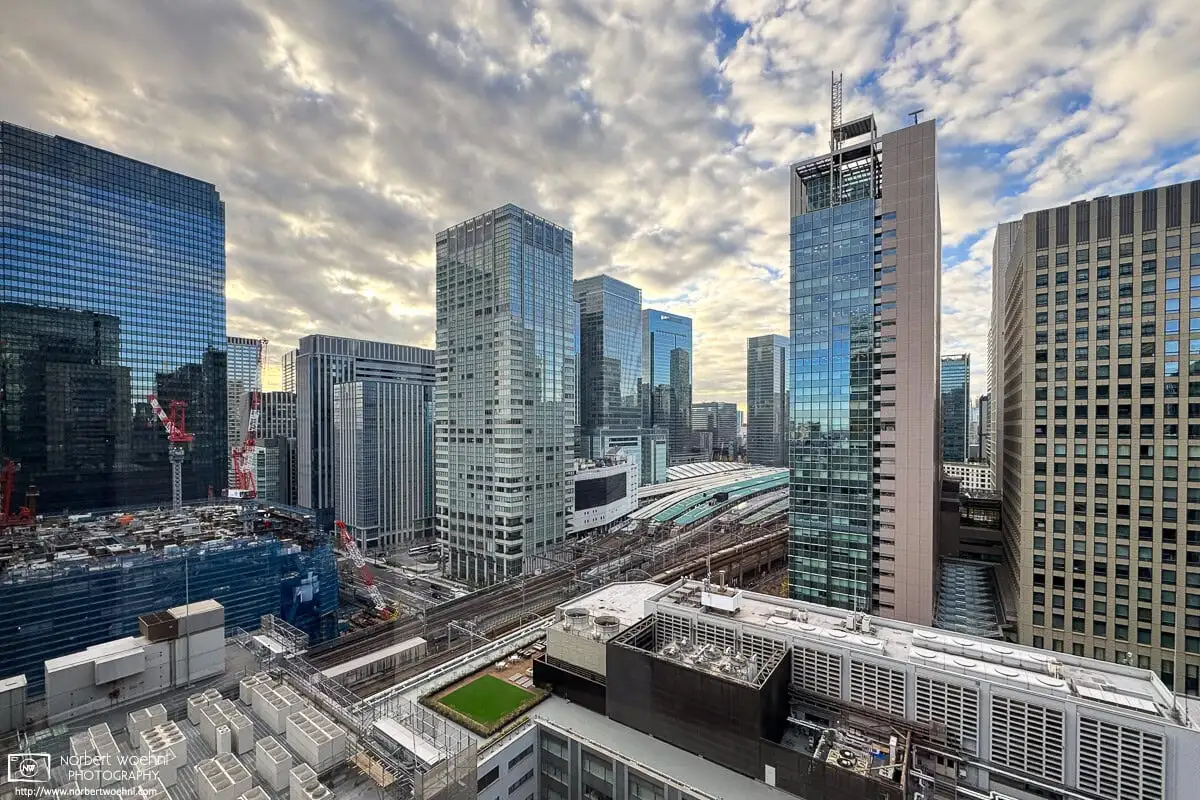 Today was my last office day for this year. The morning clouds provided a nice dramatic topping for this view towards Tokyo Station from my 18th floor office.